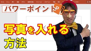 パワーポイントの場合最初に「プレースホルダー」という箱が用意されているので、そこの中を押して「画像」を選んでも可能です。